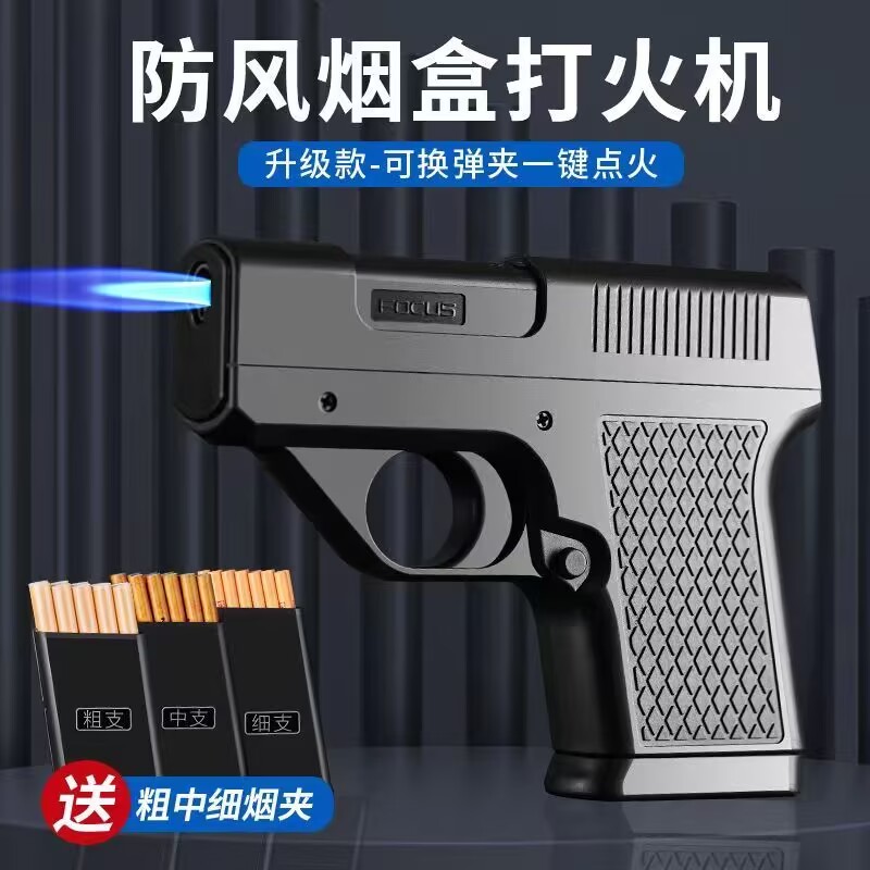 可换弹夹枪型打火机防风烟盒一体网红同款粗中细通用点烟器送男友